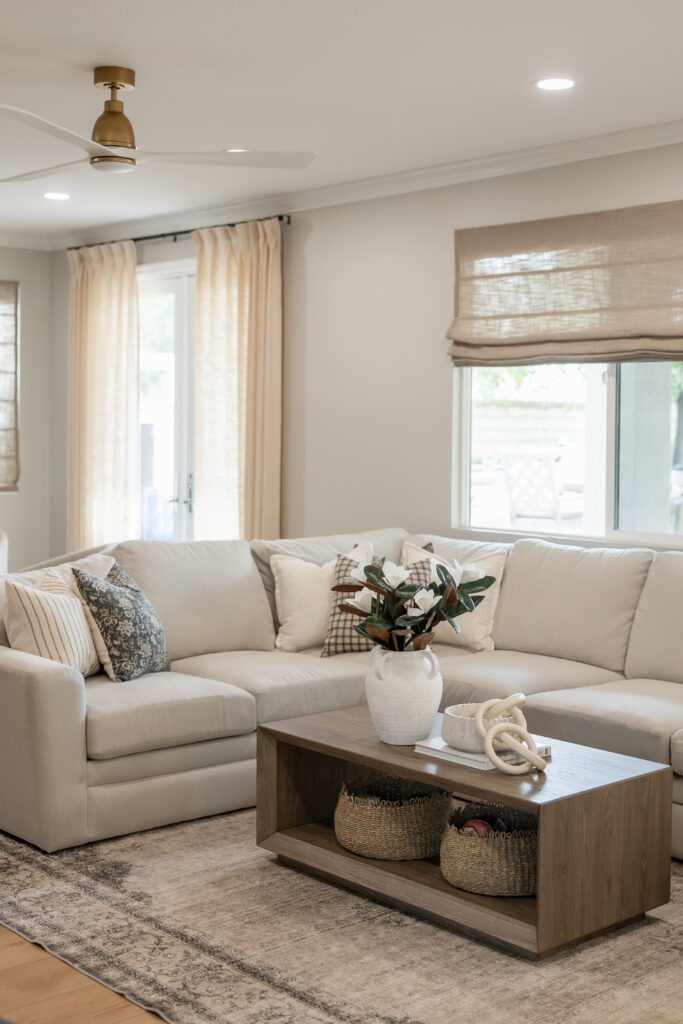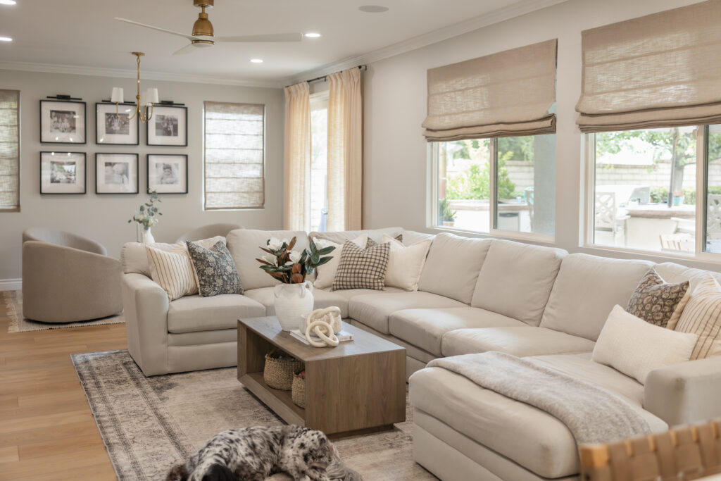 A complete kitchen and family room transformation blending California Transitional design with warm textures, custom cabinetry, and curated details. See how we turned this home into a sanctuary of understated luxury.